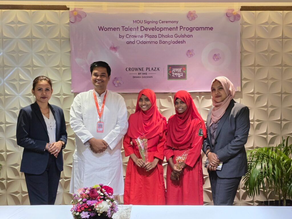 ঢাকা, ৮ মার্চ ২০২৬: আন্তর্জাতিক নারী দিবস উপলক্ষে সুবিধাবঞ্চিত শিক্ষার্থীদের সম্মানজনক কর্মসংস্থান নিশ্চিত করতে একসঙ্গে কাজ করার লক্ষ্যে চুক্তি করেছে Crowne Plaza Dhaka Gulshan ও মজার ইশকুল। প্রাথমিকভাবে মজার ইশকুলের দুটি শাখা থেকে রানি ও ফাতেমা আক্তার মিম নামের দুই শিক্ষার্থী এই সুযোগ পাচ্ছে। আয়োজকরা জানান, ভবিষ্যতে এই উদ্যোগের আওতা আরও সম্প্রসারণ করা হবে।
