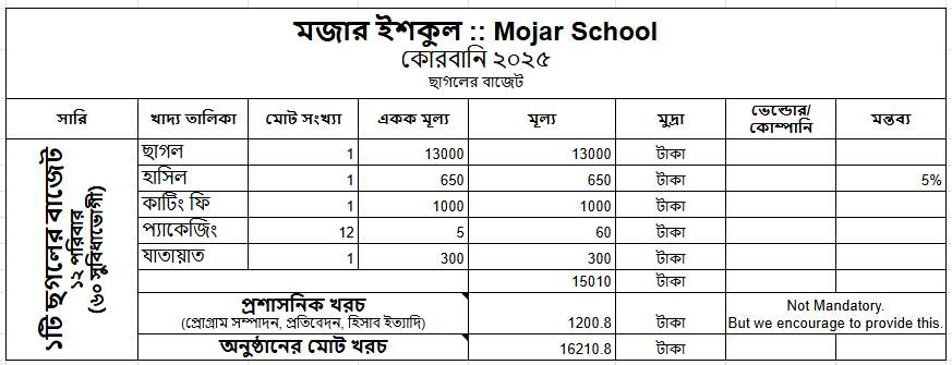 মজার ইশকুল :: Mojar School কোরবানি ২০২৫ ১টি ছাগলের বাজেট