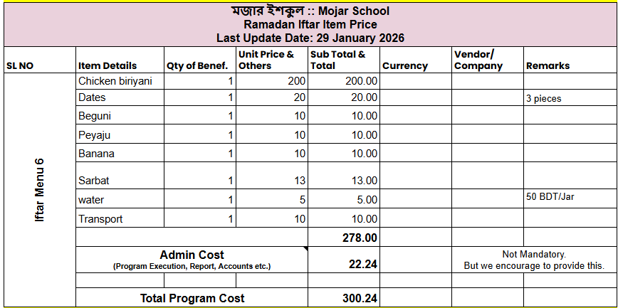 Package-6 : Donate For Daily Iftar 2026 Posted on 01/02/2026 by Fariya Islam Share this post: Facebook Twitter LinkedIn WhatsApp Telegram